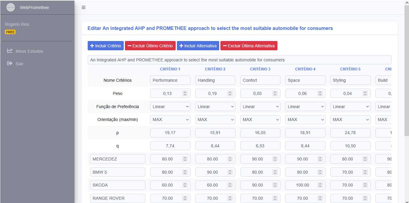 WebPromethee is an online decision support software designed to apply the PROMETHEE II method in multicriteria decision-making problems. Create rankings, compare alternatives and analyze results with professional visualizations.