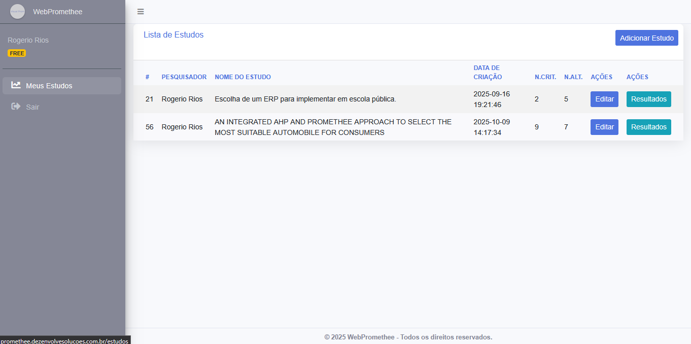 WebPromethee is a web-based decision support software developed for professionals and researchers who apply the PROMETHEE II method. The platform enables complete multicriteria decision analysis, generation of reliable rankings and clear visualization of results directly in the browser.